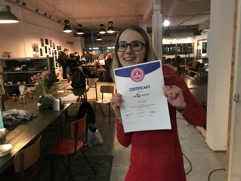 donderdag heeft een groep van negen Flevolandse ExpEx hun certificaat van de training