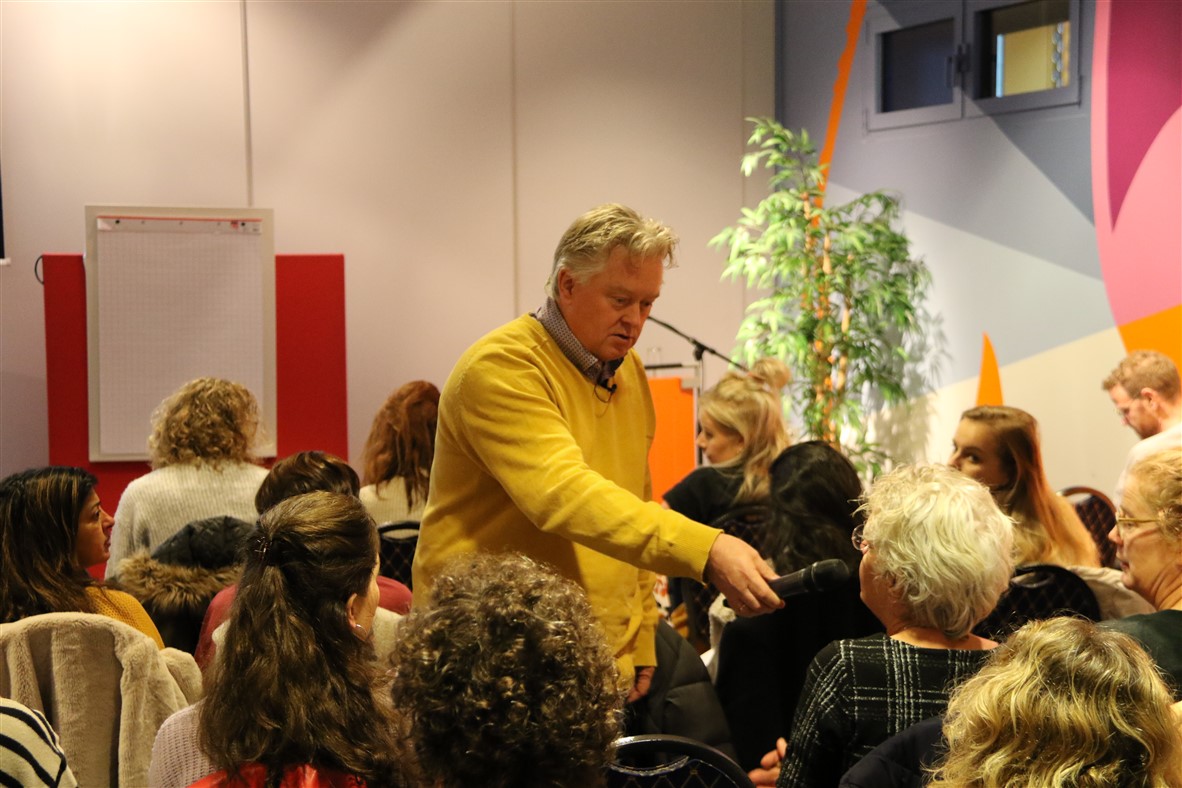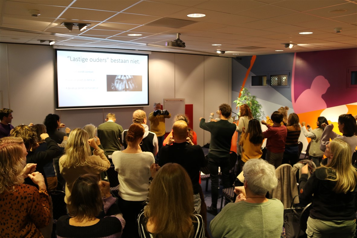 Maandag 21 november gaf systeemtherapeut Téo Visser een lezing over systeemgericht werken in crisissituaties. Téo nam het publiek op interactieve wijze mee in de uitgangpunten van de systeemtheorie, en hoe doe je dat nou in de praktijk. Het doel van deze lezing was om deelnemers perspectief te geven op hoe je een crisissituatie positief kunt benaderen en negatieve gedragspatronen kunt doorbreken in lastige casussen. Dat onderwerp bleek een schot in de roos, want de zaal zat bijna vol!